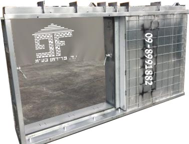 דלת לממ"ק קומפלט - פתח אור 80דלת בעלת משקוף וכנף מורכבים. הדלת מגיעה סגורה כאשר בין הכנף למשקוף ישנם מרווחיות איתן חובה לצקת ורק אחרי היציקה מותר לשחררן.