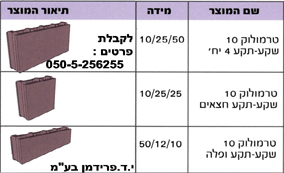 בלוק בטון כבד למחיצות ברוחב 10 ס"מ.